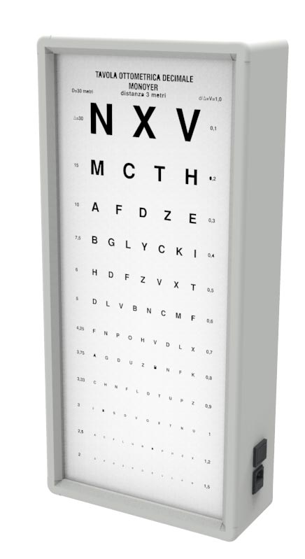 Les optotypes lumineux GIMA ont été conçus selon des recommandations cliniques pour une lumière blanche optimale afin d'assurer une lecture exacte et précise de tous les détails. Dotés d'un écran acrylique, conformes aux normes de sécurité (fusibles, prise Shuko, lumière verte On/Off...).